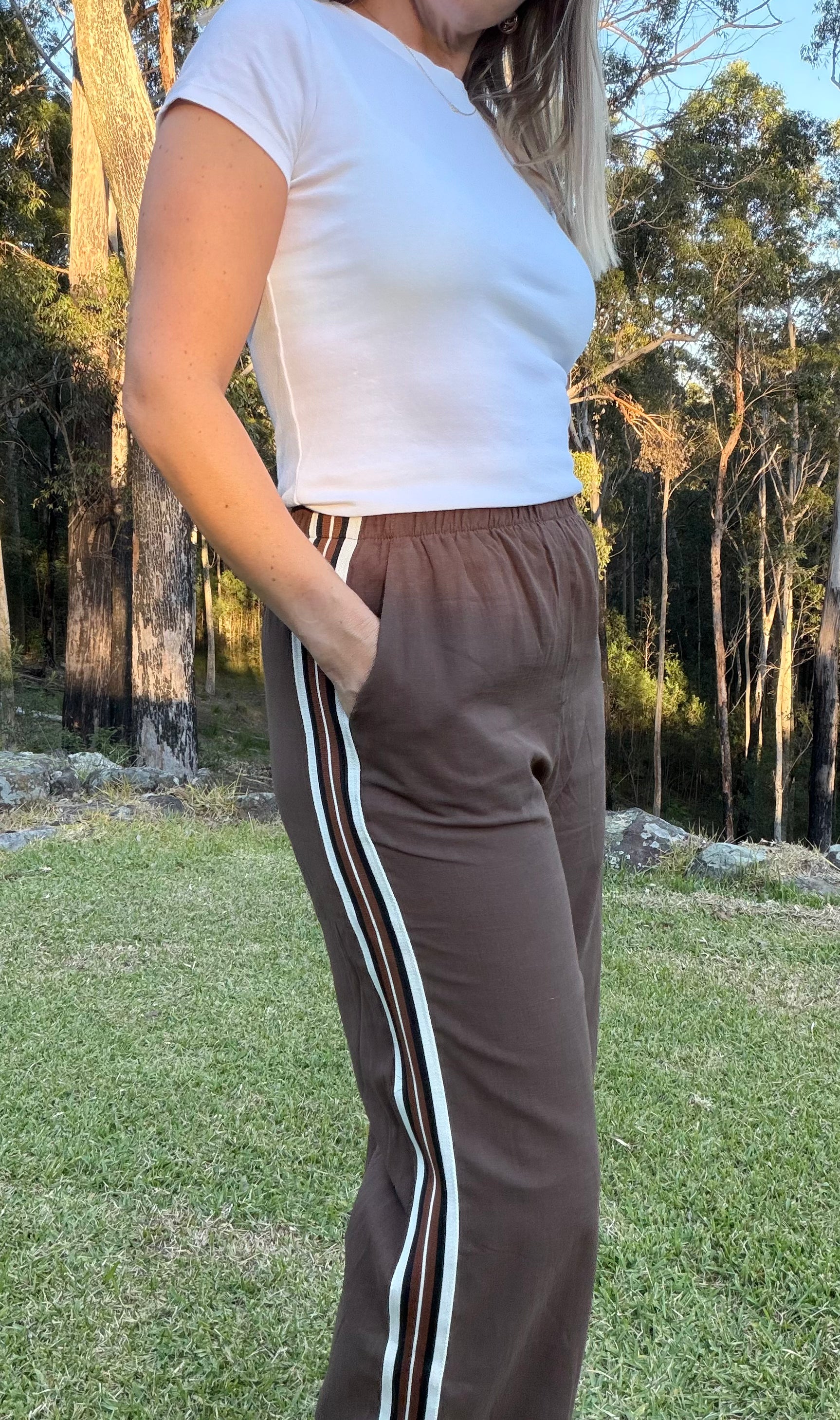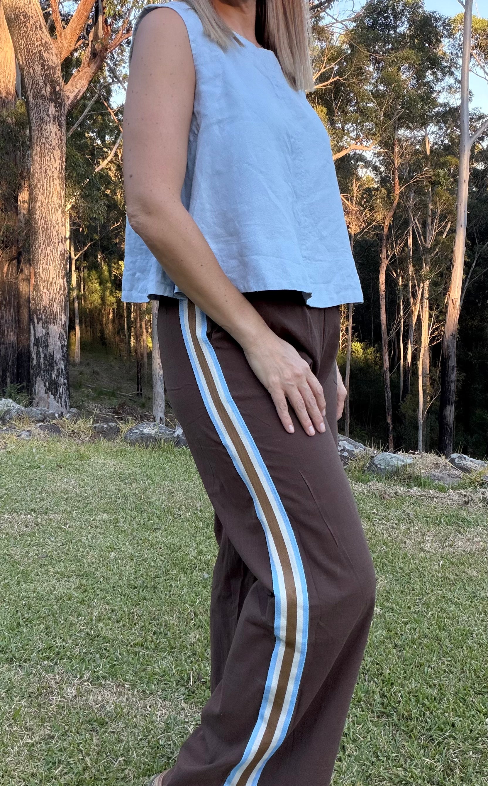 By Frankie ChocolateRacer Pants with Blue/Mocha Stripe