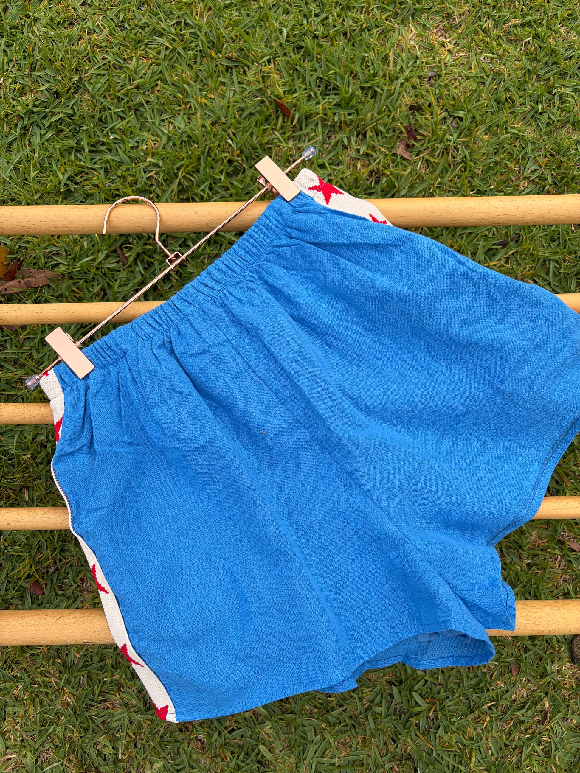 Our Blue Star Racer Shorts are 100% cotton with pockets, fully lined, and super comfy. Pair perfectly with our Feeling Lucky tee for an easy, cute look